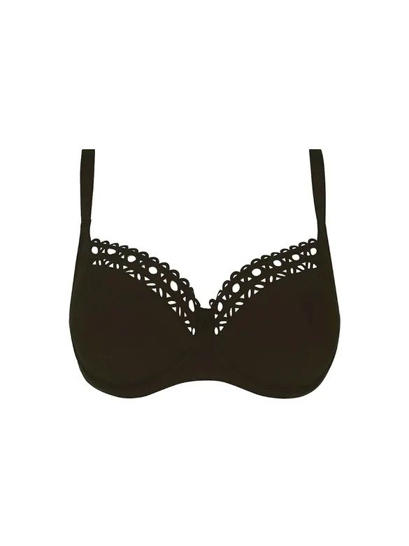 Reggiseno balconcino con ferretto in tessuto unito. Modello leggero e confortevole con banda traforata nella scolaltura. Spalline regolabili multiposizione, diritte, al collo o incrociate con ganci a clips